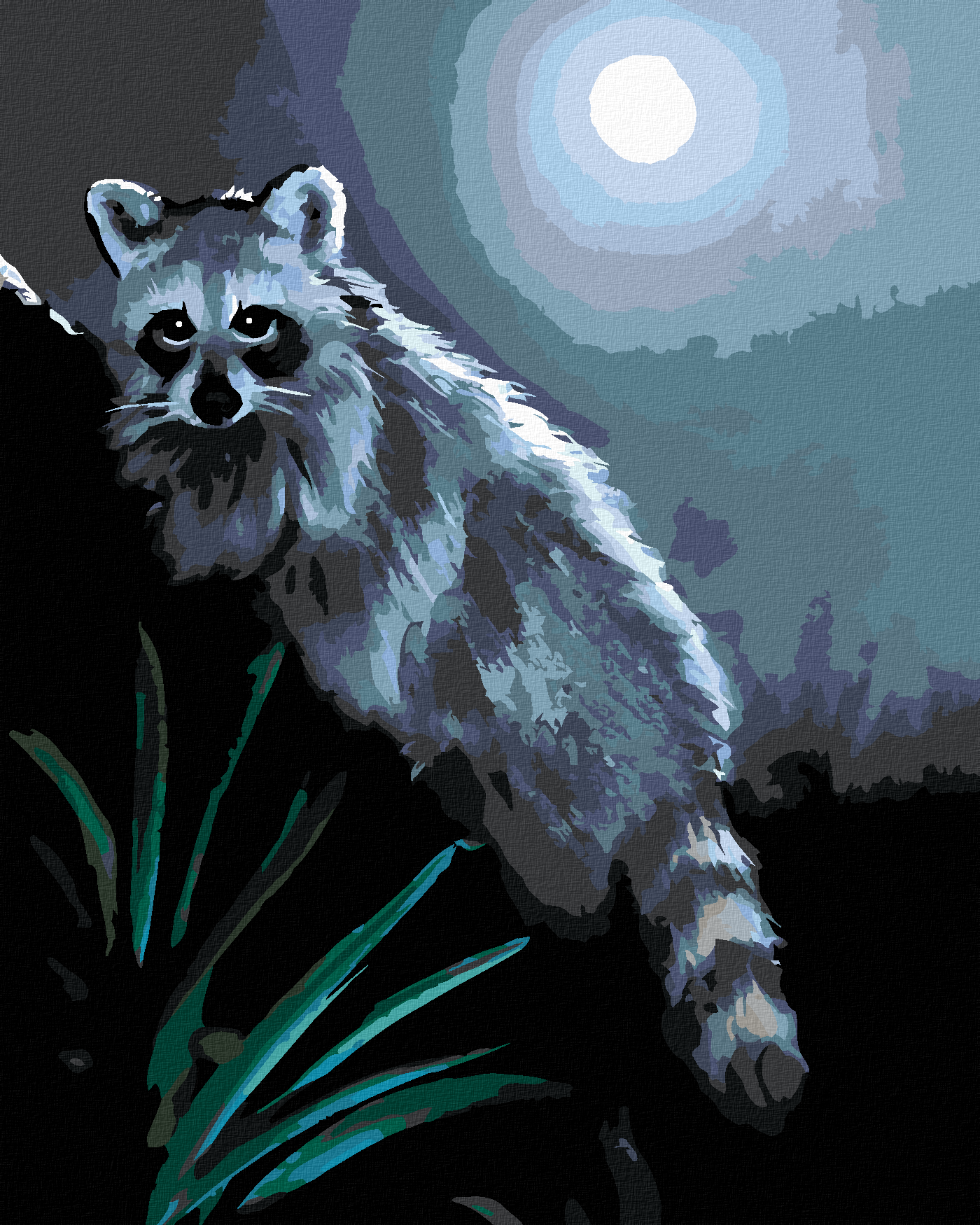 Malen nach Zahlen - WASCHBÄR BEI NACHT UND VOLLMOND (D. RUSTY RUST)