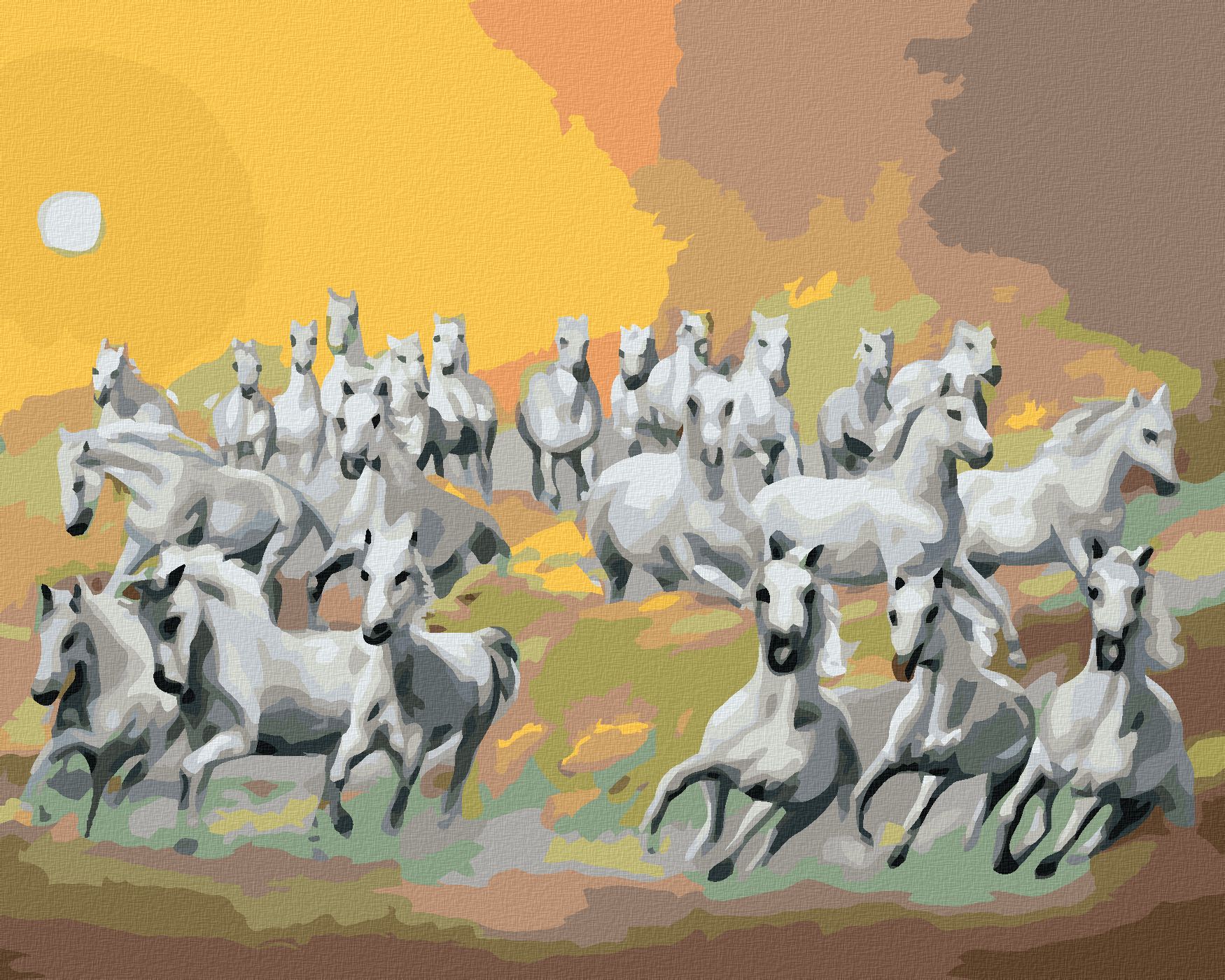 Malen nach Zahlen - WEISSE PFERDE IN DEN WOLKEN UND SONNE (D. RUSTY RUST)