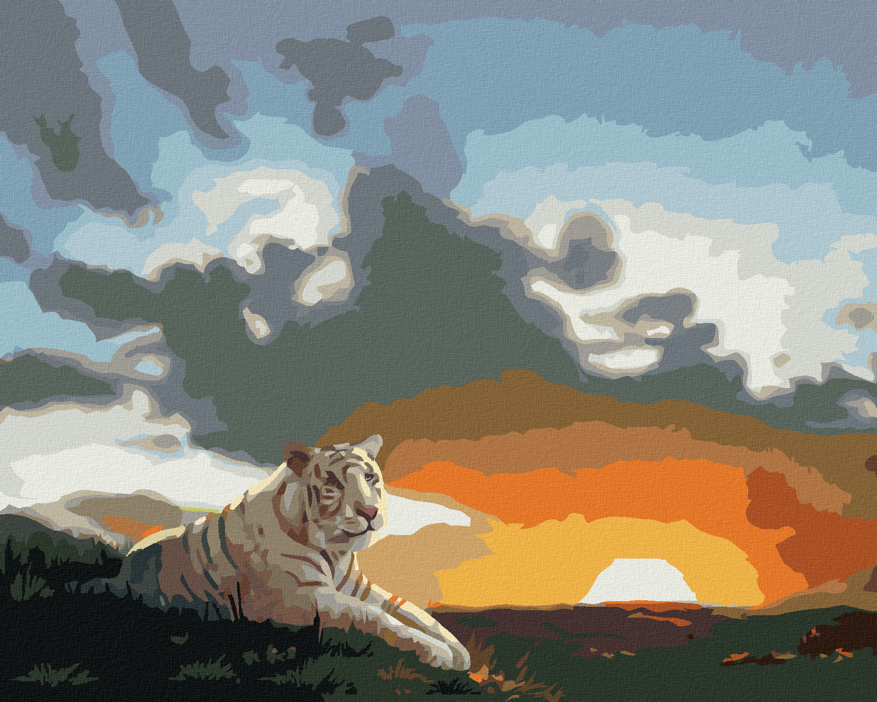Malen nach Zahlen - WEISSER TIGER UND SONNENUNTERGANG (D. RUSTY RUST)