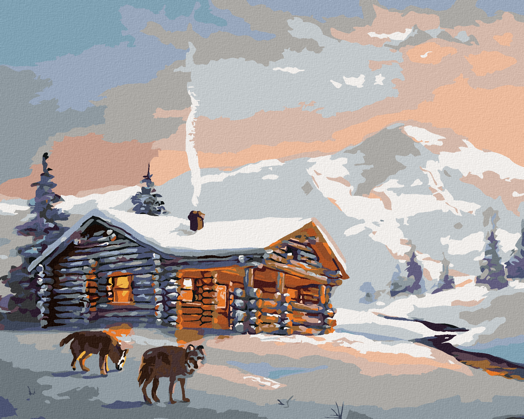 Malen nach Zahlen - WÖLFE UND HÜTTE IM WINTER (D. RUSTY RUST)
