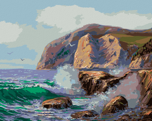 Malen nach Zahlen - STRAND MIT GEGEN FELSEN SCHLAGENDE...