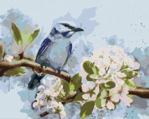 Malen nach Zahlen - BLAUER VOGEL AUF EINEM KIRSCHBLÜTE...