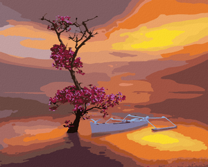 Malen nach Zahlen - BOOT MIT SCHÖNEM BLÜHENDEN BAUM