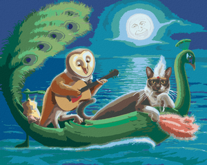 Malen nach Zahlen - EULE UND KATZE AUF EINEM PFAUENFÖR...