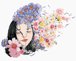 Malen nach Zahlen - VERTRÄUMTE FRAU UND BLUMEN