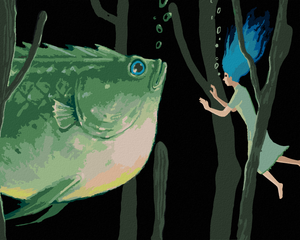 Malen nach Zahlen - RIESIGER GRÜNER FISCH MIT EINER FRAU