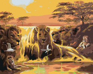 Malen nach Zahlen - LÖWE, WASSERFALL UND SONNE (D. RUS...