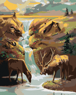 Malen nach Zahlen - HIRSCH, WASSERFALL UND SONNENUNTER...