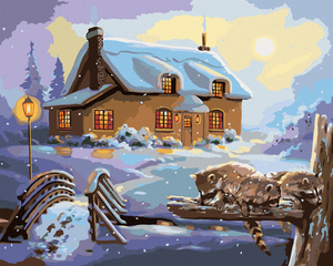Malen nach Zahlen - WASCHBÄR UND HAUS IM WINTER (D. RU...