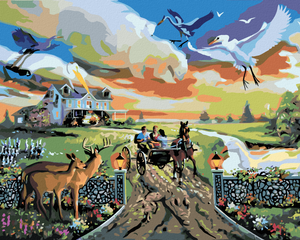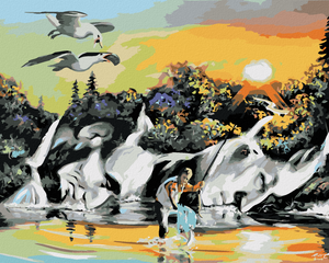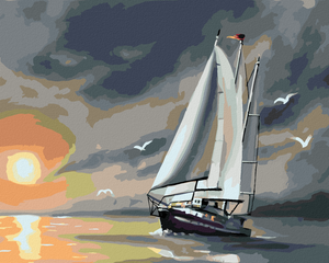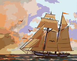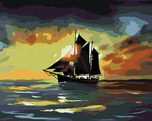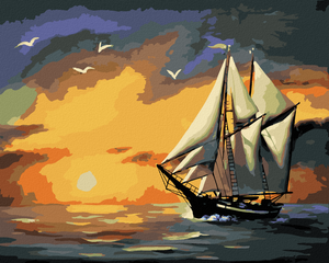 Malen nach Zahlen - SEGELSCHIFF, VÖGEL UND HIMMELSRÖTE...