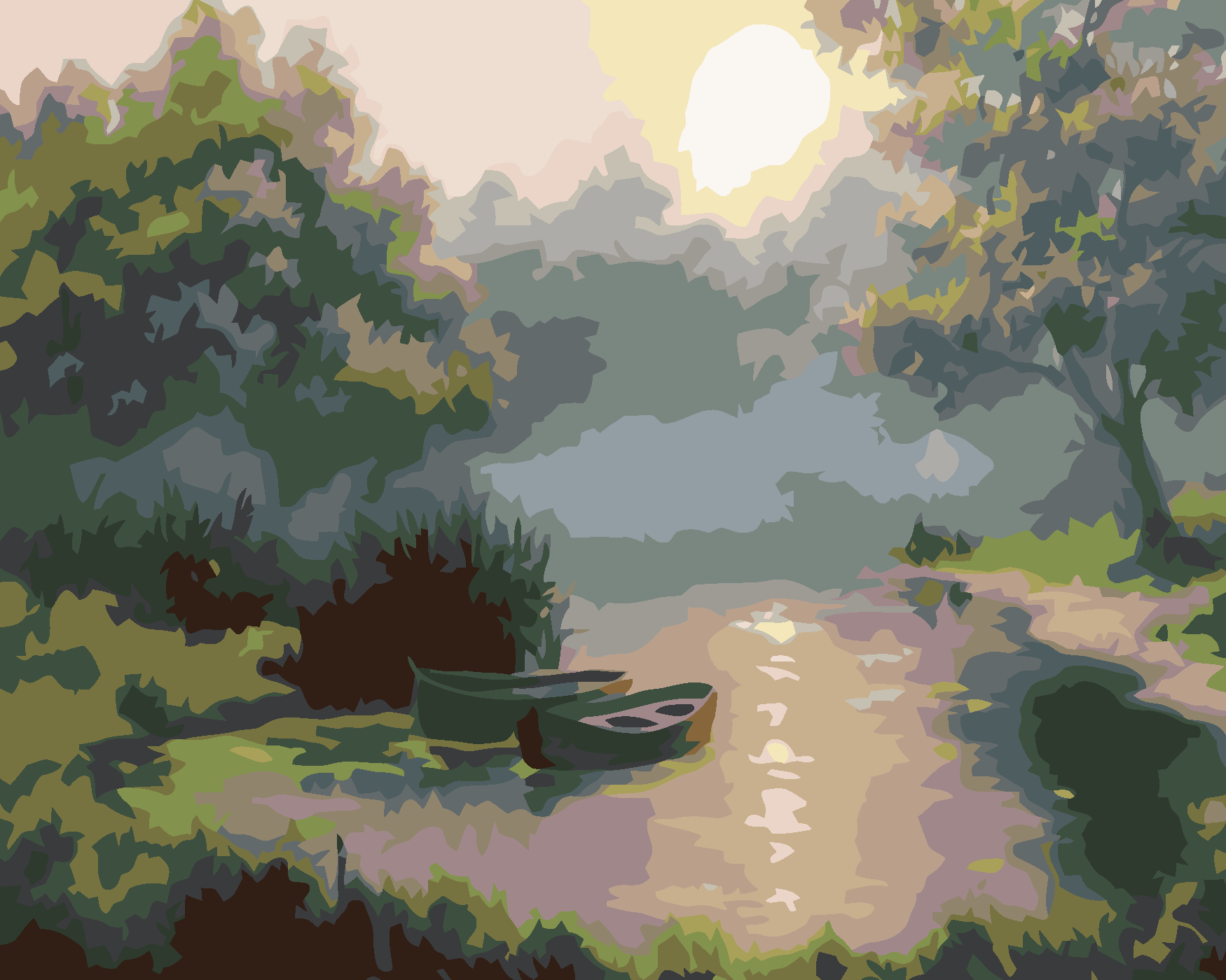 Malen nach Zahlen - BOOTE BEIM HERBSTSONNENAUFGANG