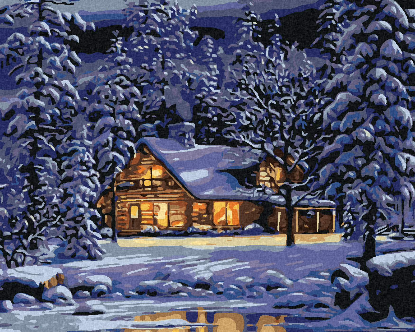 Malen nach Zahlen - DIE VERSCHNEITENE HOLZHÜTTE