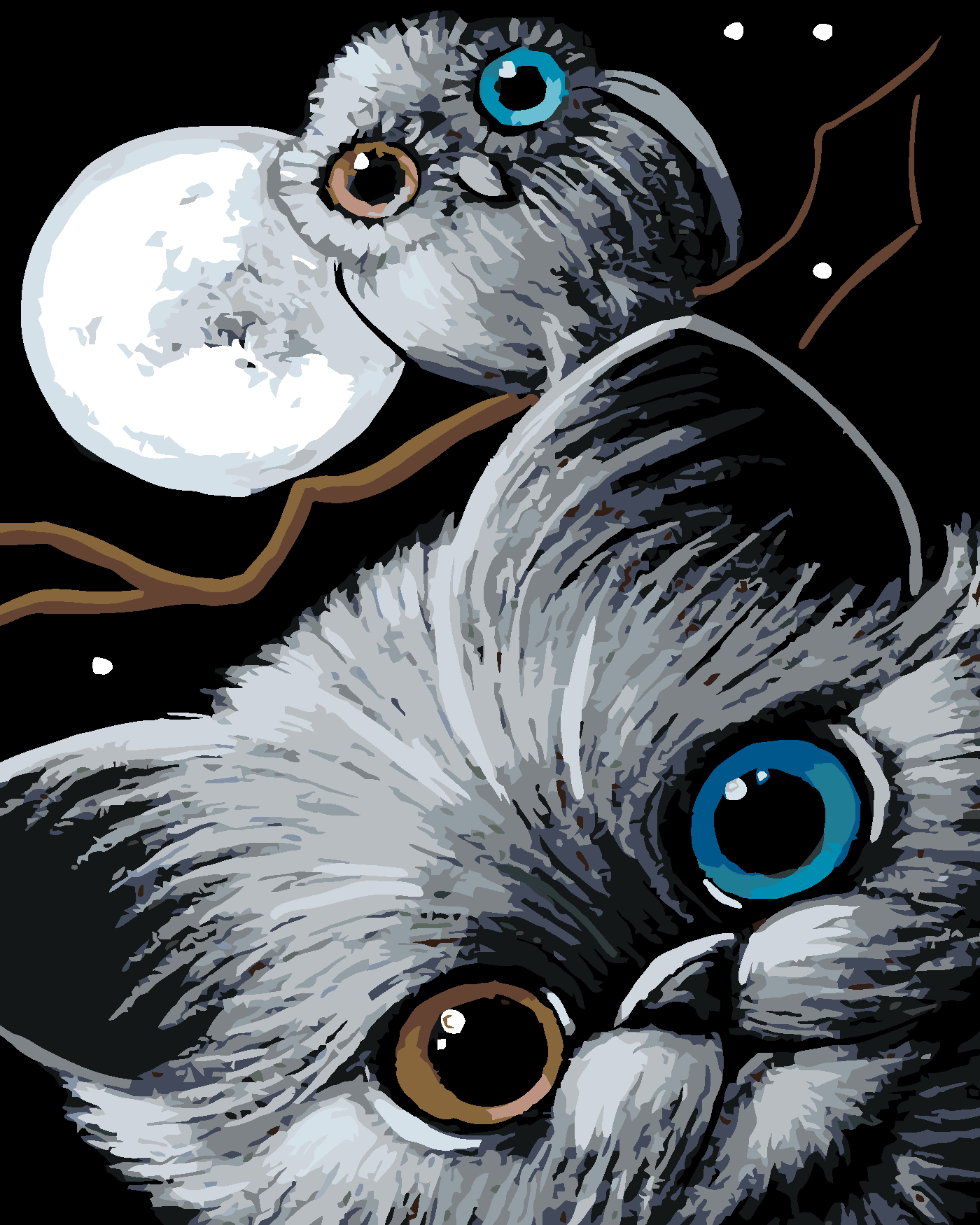 Malen nach Zahlen - KÄTZCHEN, EULE UND MOND
