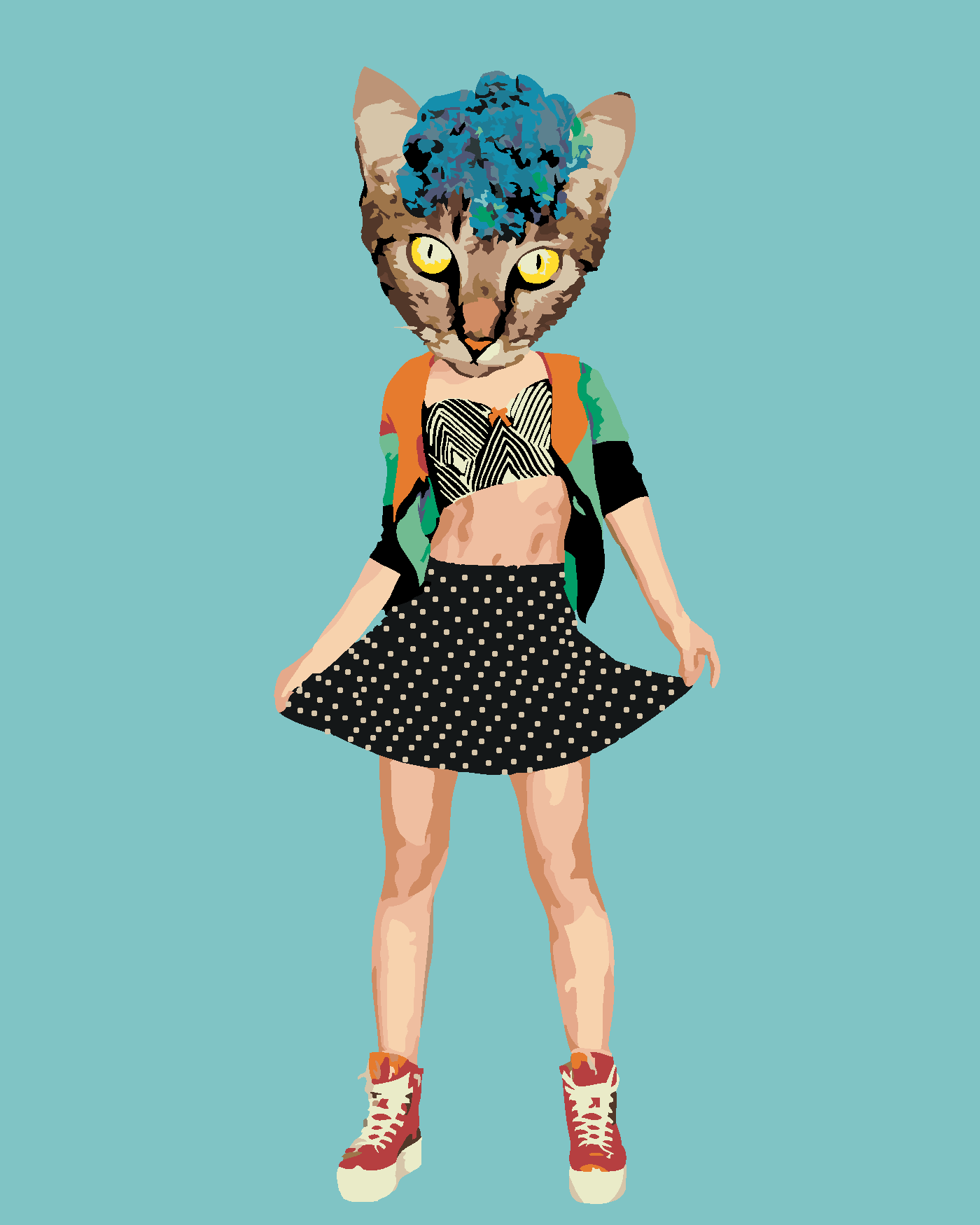 Malen nach Zahlen - KATZE IN KLEIDUNG UND BLUMEN