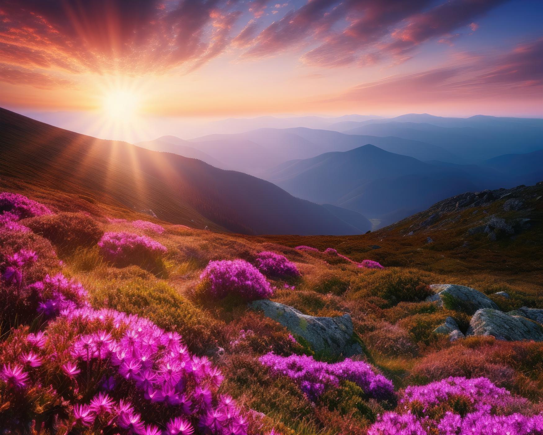 Leinwandbilder - Bergwiese bei Sonnenuntergang