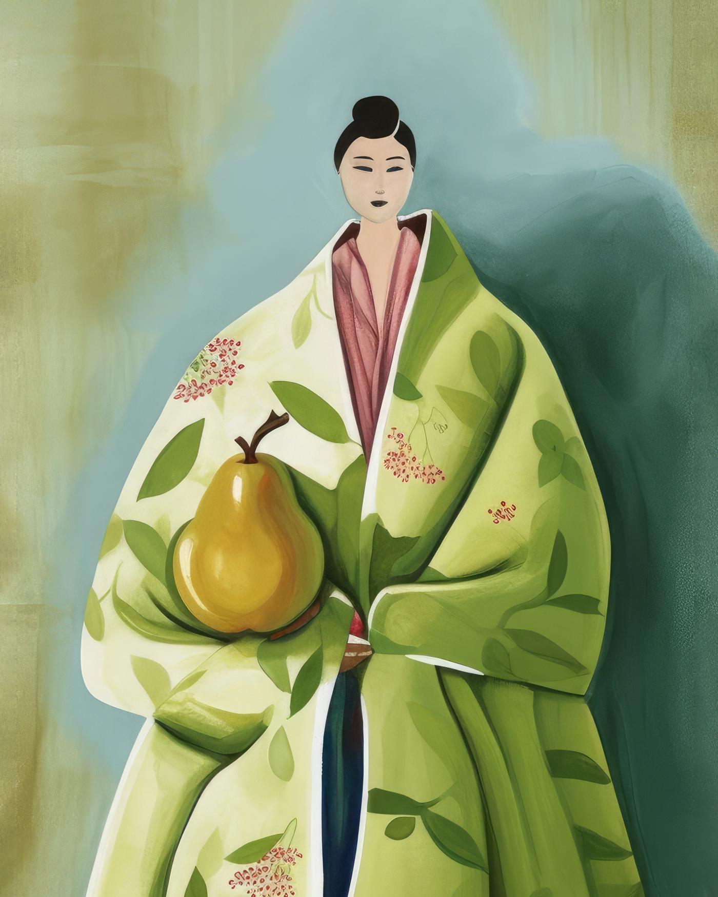Leinwandbilder - Japanerin mit Birne