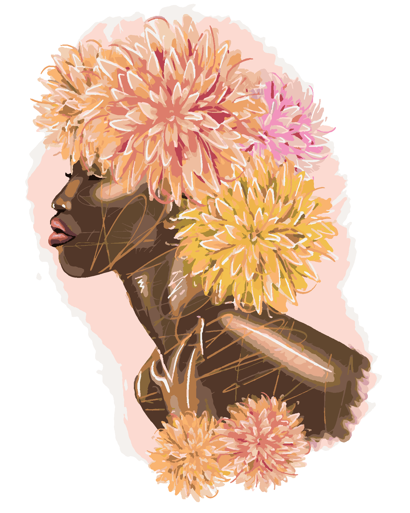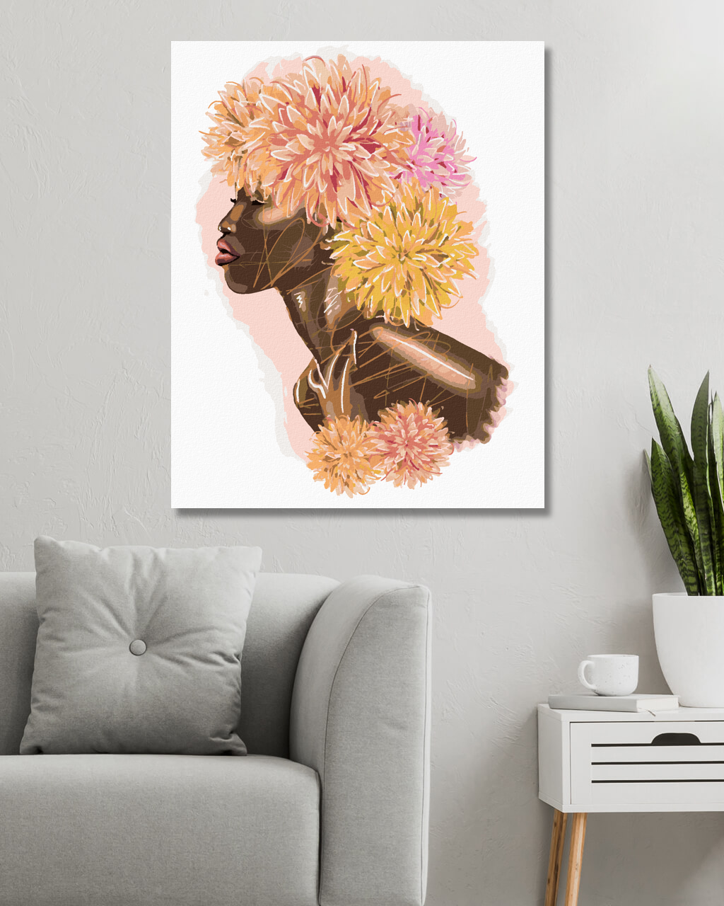 Malen nach Zahlen - AFRIKANISCHE FRAU MIT BUNTEN BLUMEN