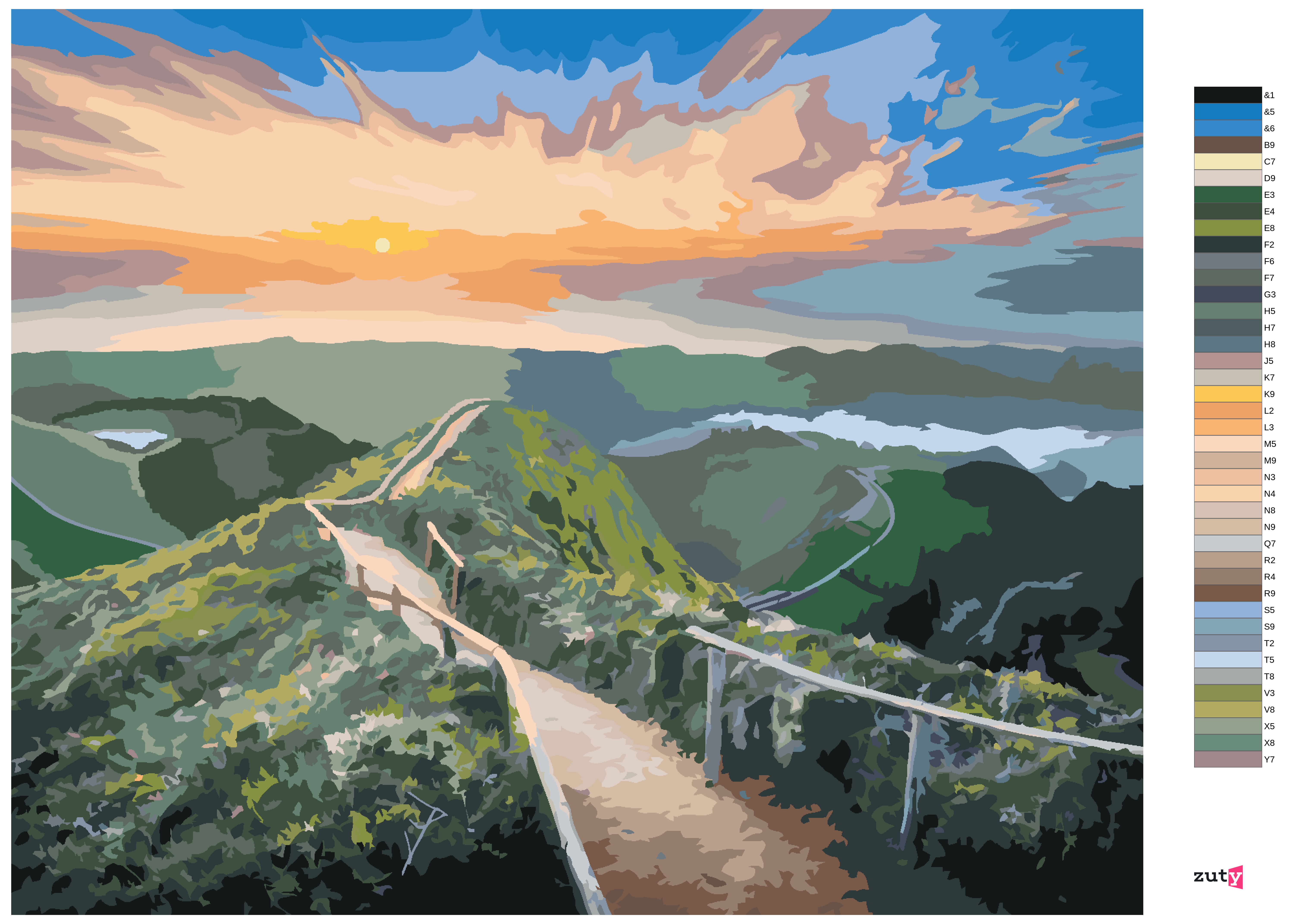 Malen nach Zahlen - BERGLANDSCHAFT MIT WANDERWEG