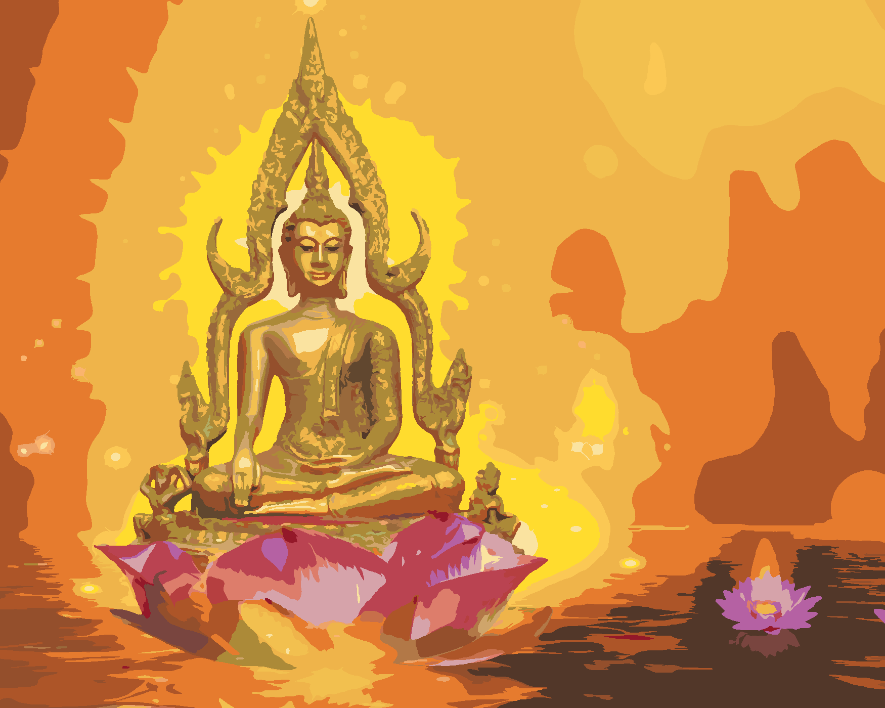 Malen nach Zahlen - BUDDHA IM LOTUS MIT ORANGEFARBENEM HINTERGRUND