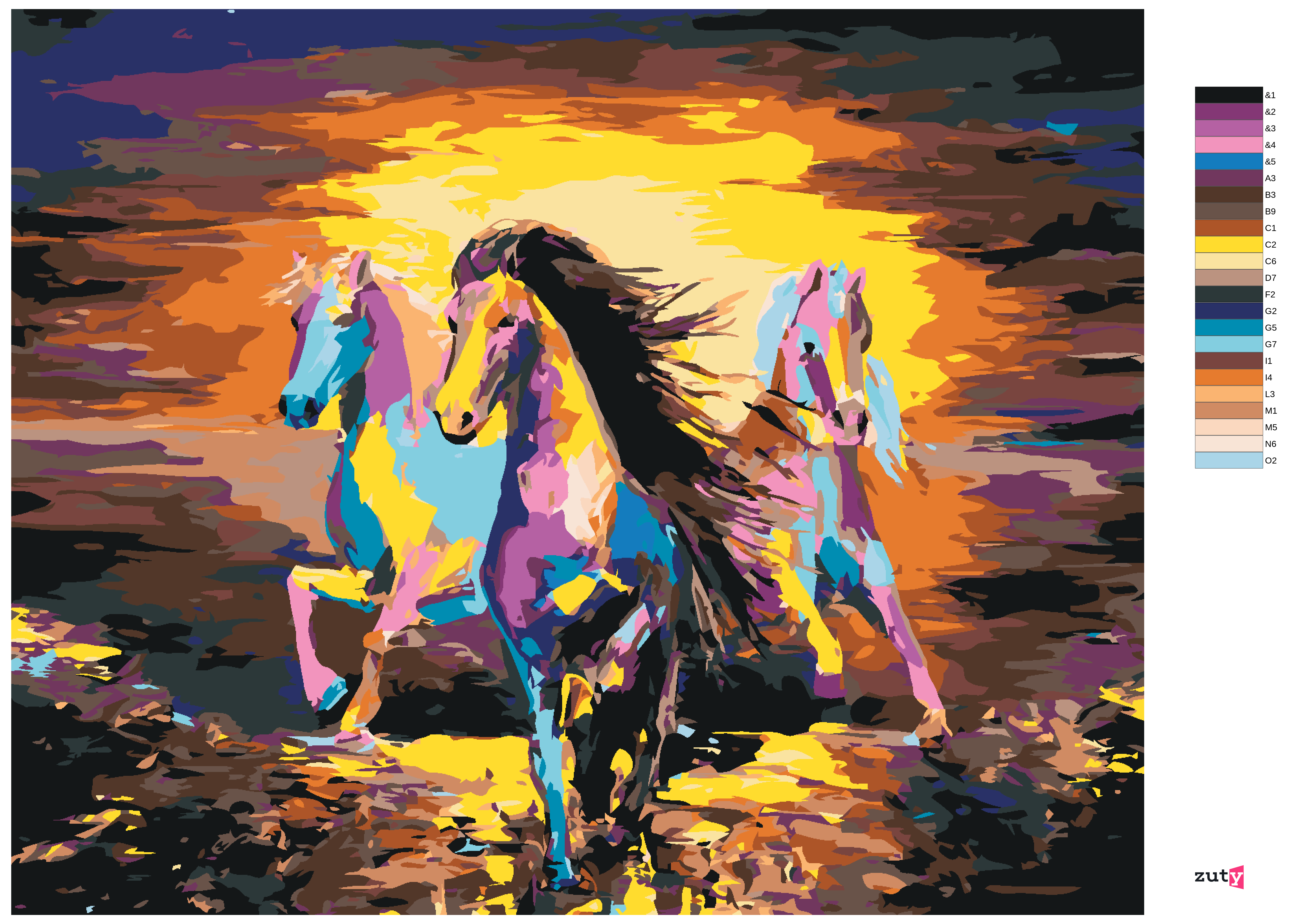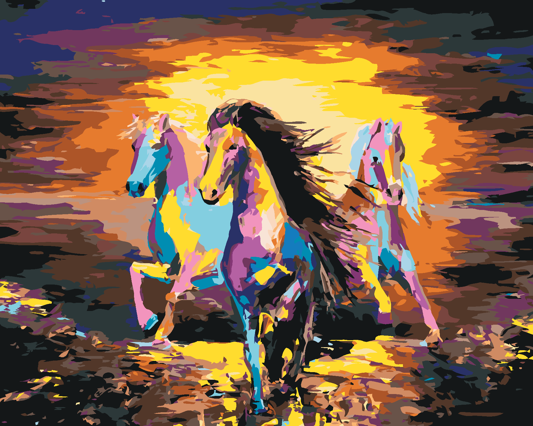 Malen nach Zahlen - BUNTE HERDE VON PFERDEN