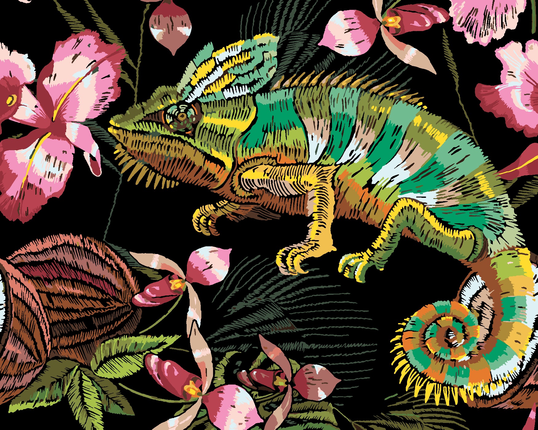 Malen nach Zahlen - CHAMÄLEON UND ORCHIDEEN