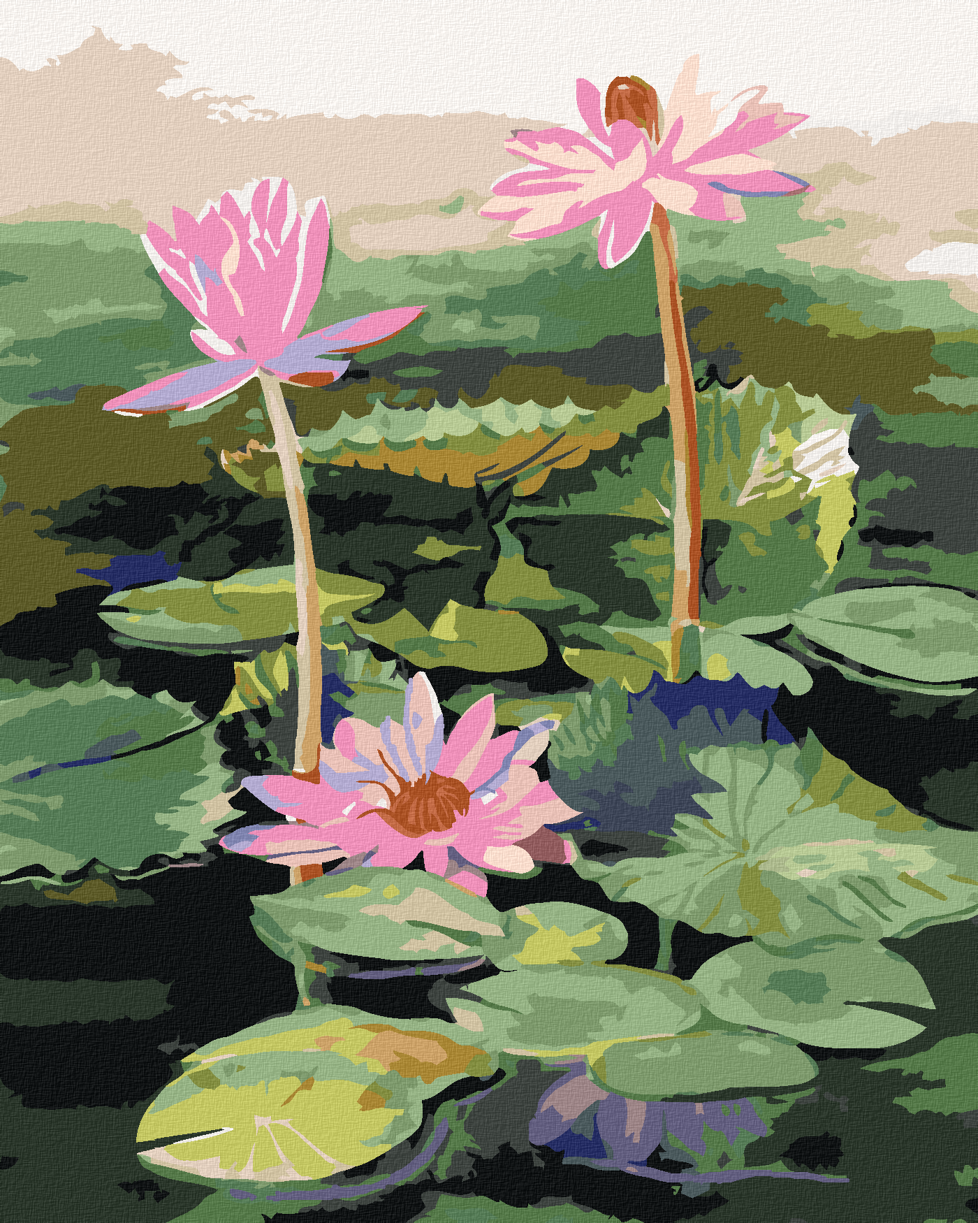 Malen nach Zahlen - DREI ROSA SEEROSEN AUF DEM SEE