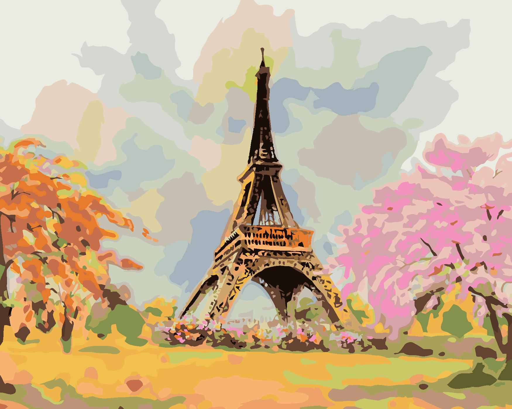 Malen nach Zahlen - EIFFELTURM UND ROSA BAUM