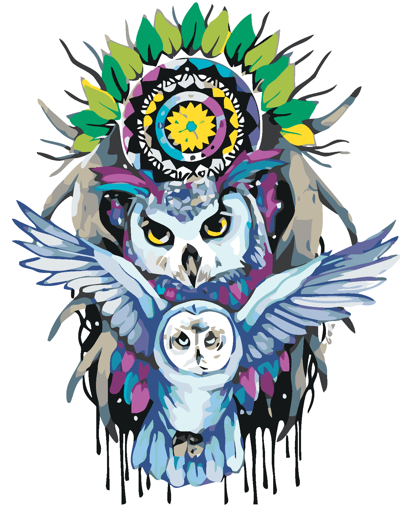 Malen nach Zahlen - EULEN UND MANDALA