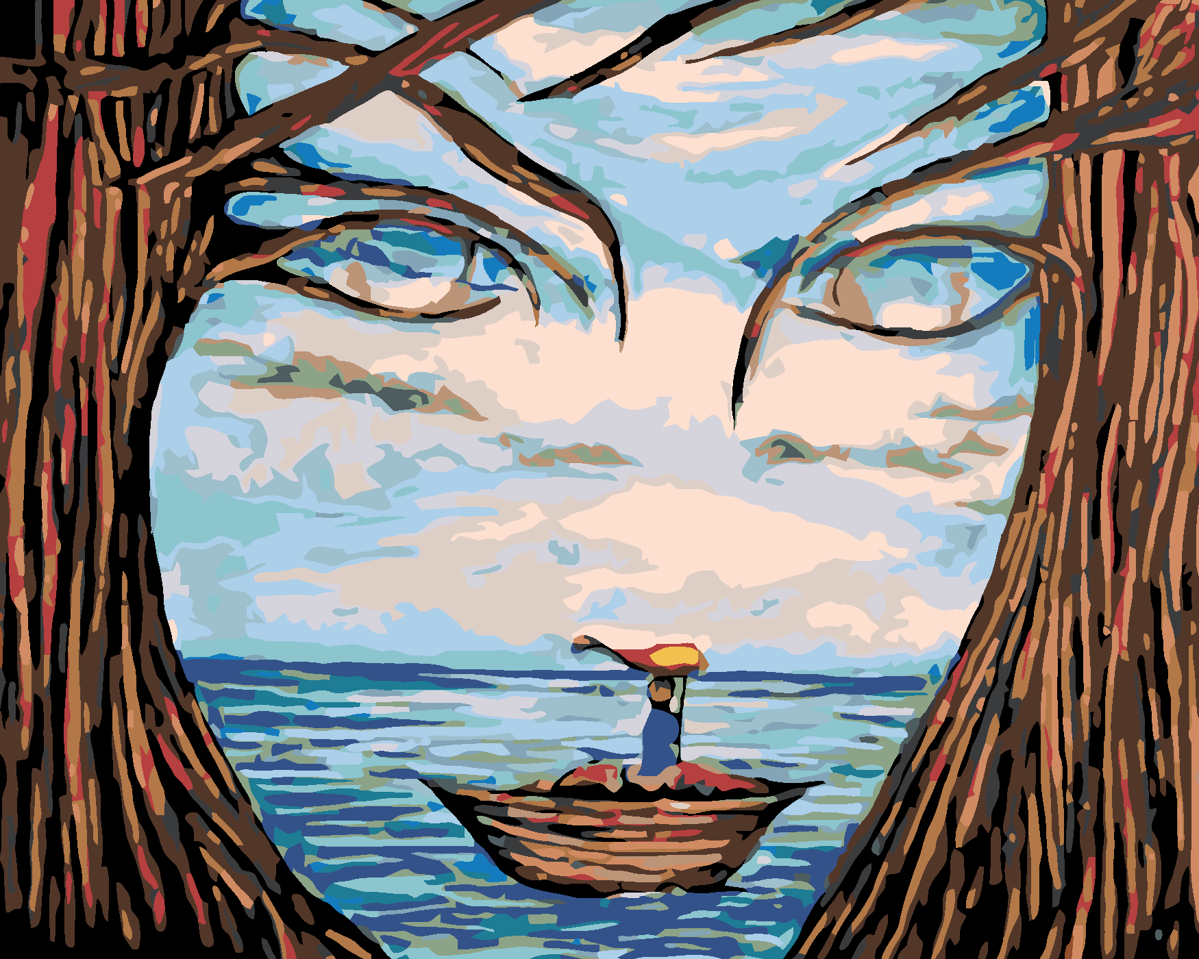 Malen nach Zahlen - GESICHT IN BÄUMEN