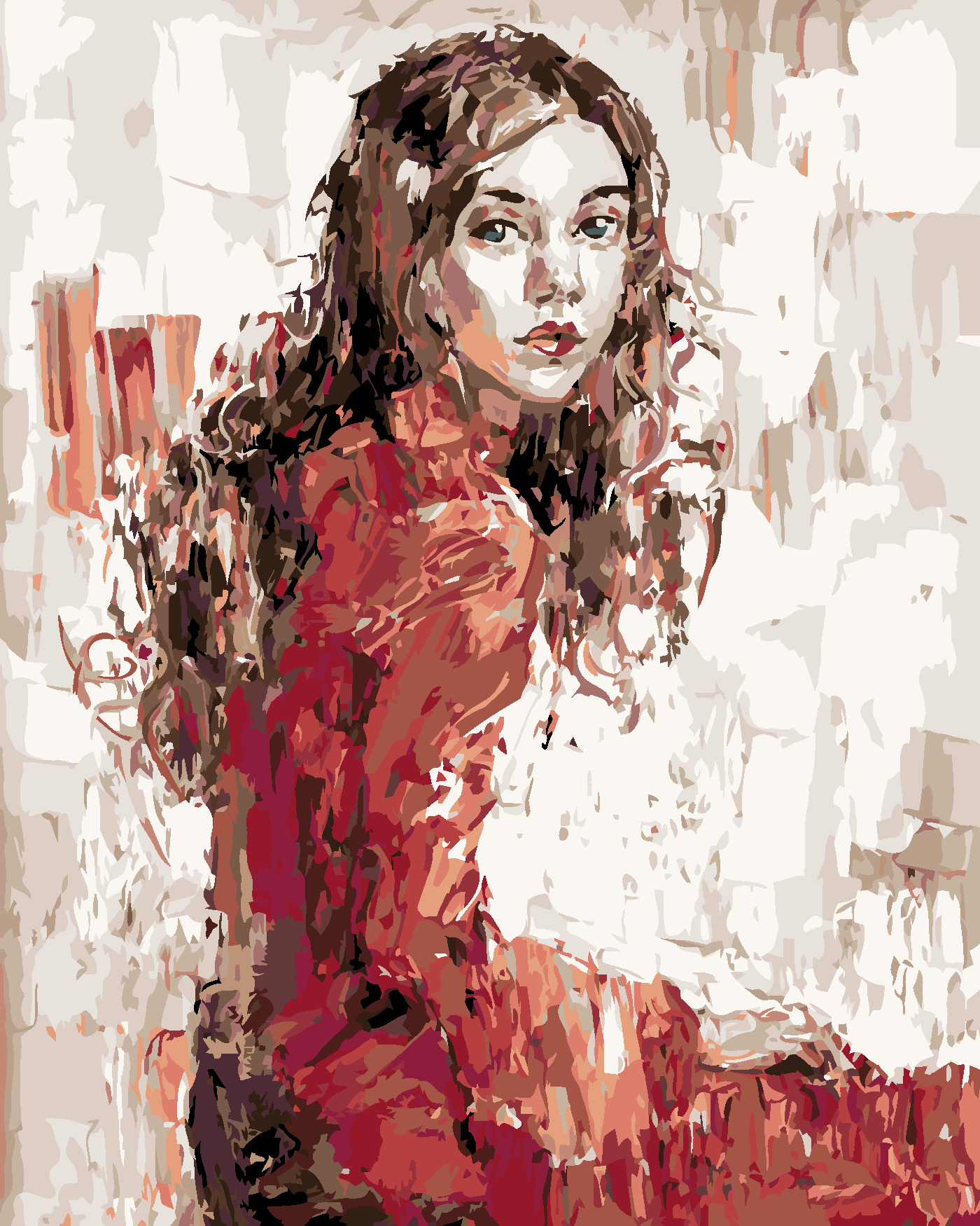 Malen nach Zahlen - JUNGE FRAU IN ROTEM KLEID