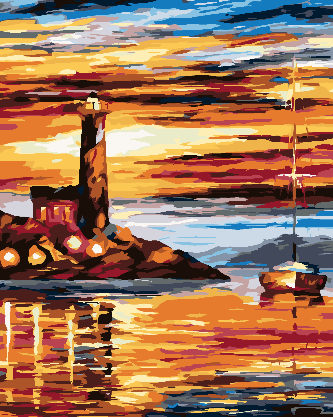 Malen nach Zahlen - LEUCHTTURM UND SEGELBOOT