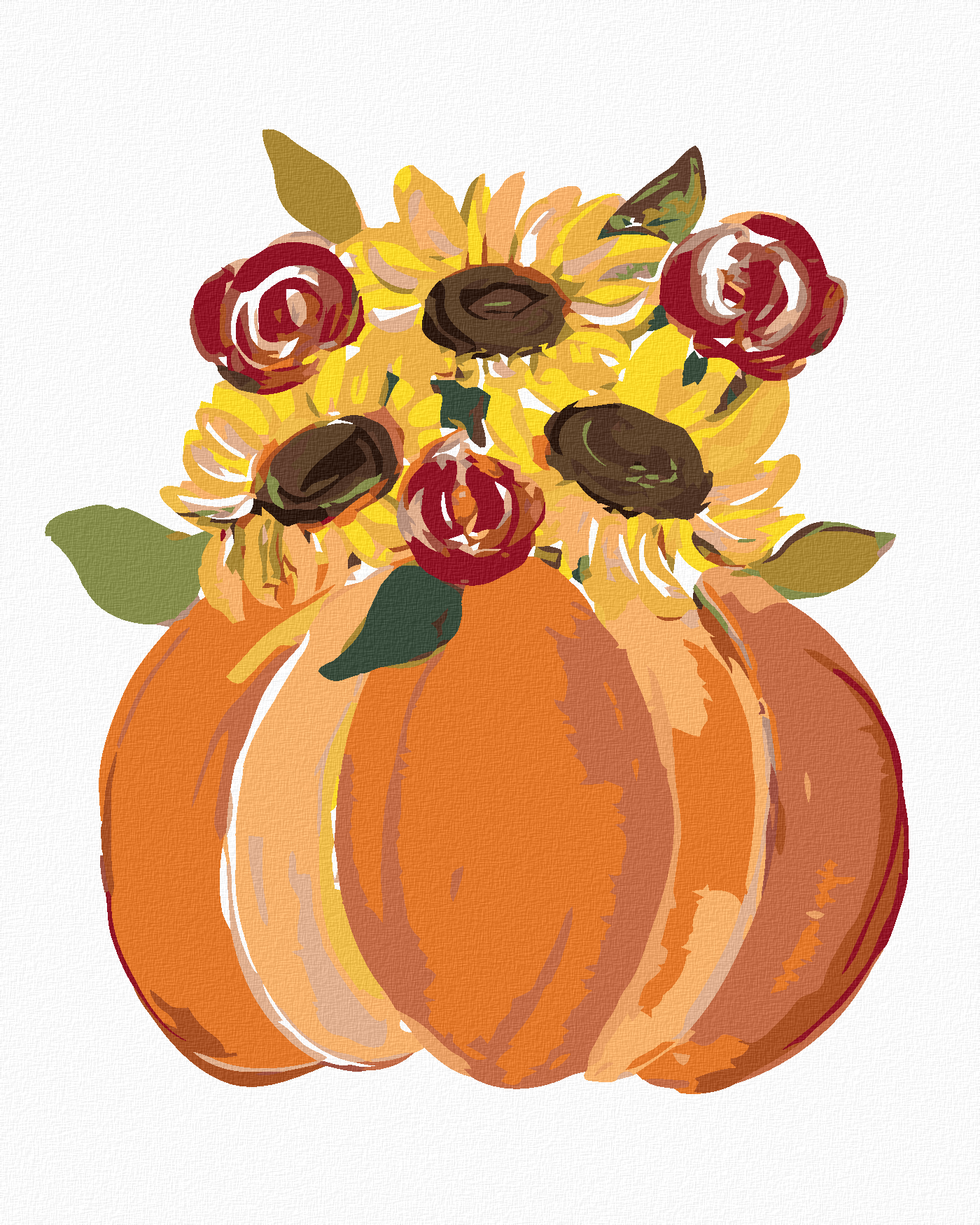 Malen nach Zahlen - ORANGEFARBENE KÜRBISSE MIT SONNENBLUMEN (HALEY BUSH)