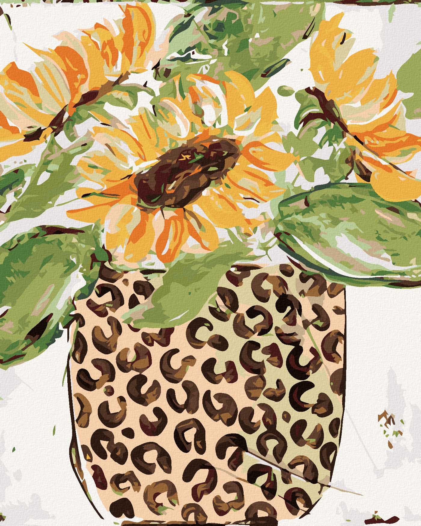 Malen nach Zahlen - SONNENBLUMEN IN EINER LEOPARDENVASE (HALEY BUSCH)
