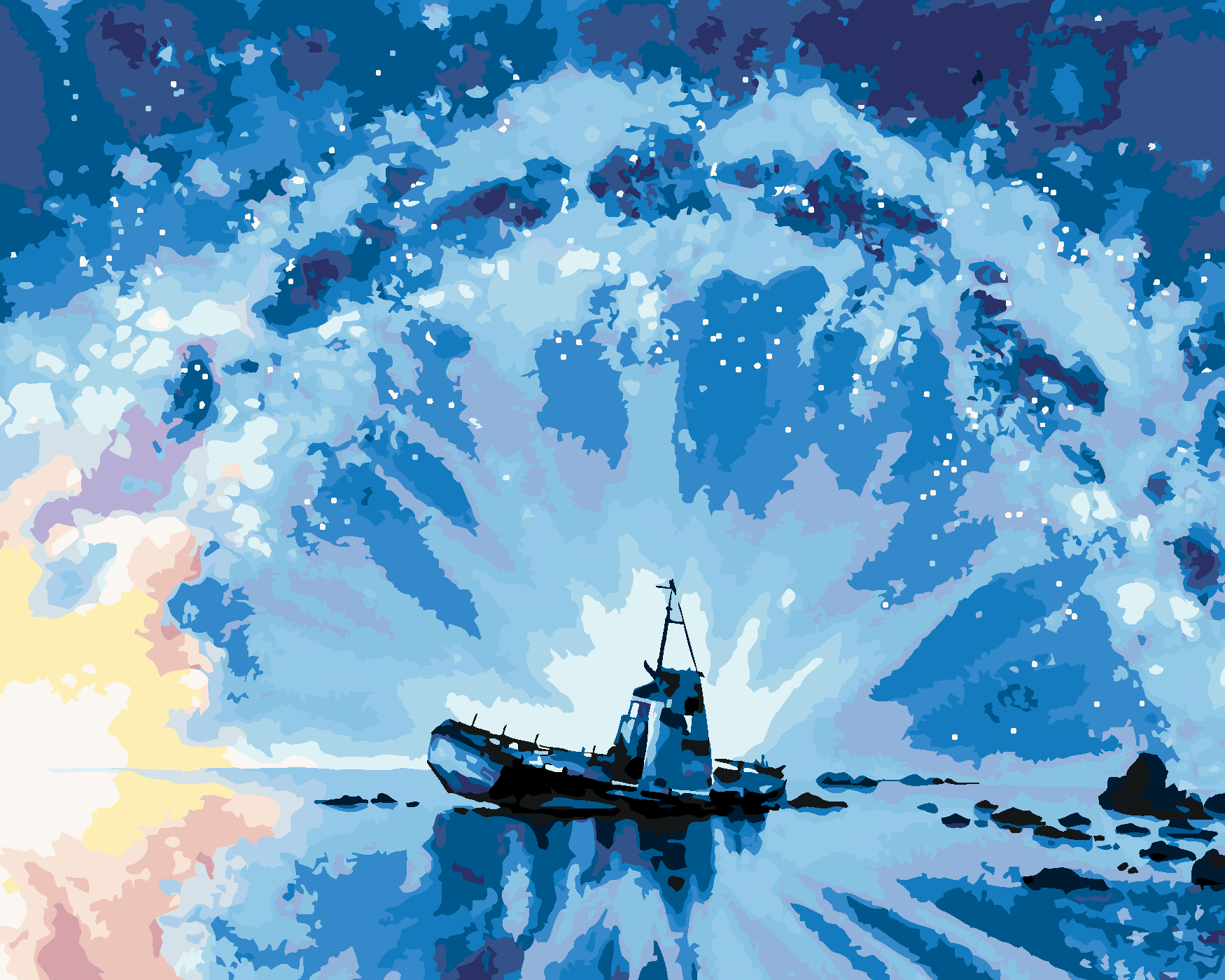 Malen nach Zahlen - VERLASSENES BOOT UND MILCHSTRAßE