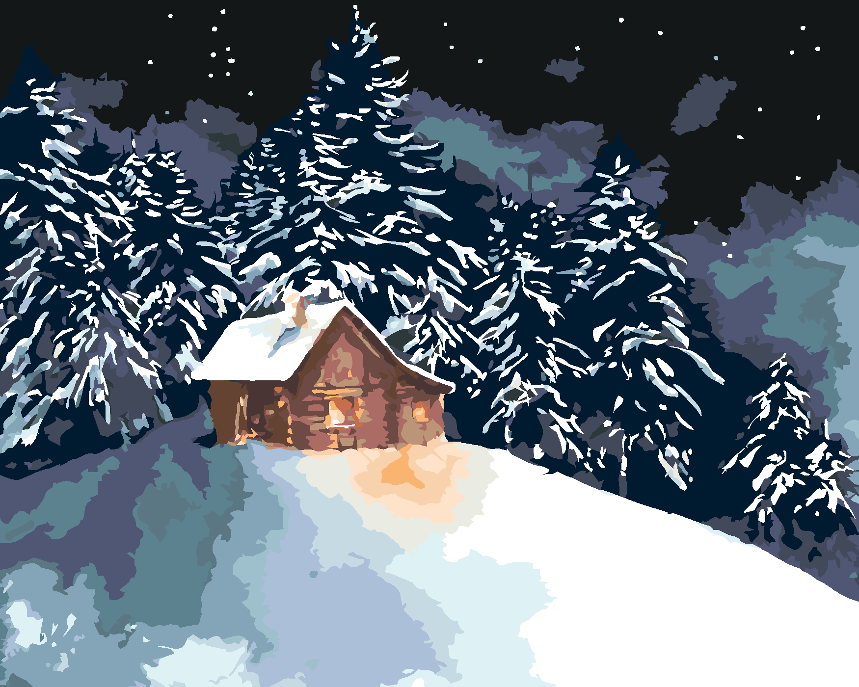 Malen nach Zahlen - WALDBLOCKHAUS AUF EINEM VERSCHNEITEN HÜGEL