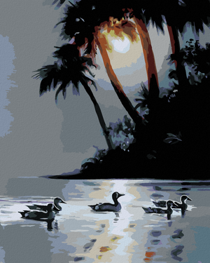 Malen nach Zahlen - ENTE, PALMEN UND SONNENUNTERGANG (...
