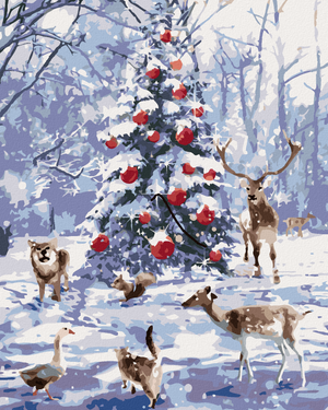 Malen nach Zahlen - TIERE AM WEIHNACHTSBAUM