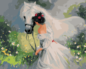 Malen nach Zahlen - EIN MÄDCHEN IM WEISSEN KLEID UND E...