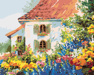 Malen nach Zahlen - HAUS IN EINEM BLUMENGARTEN