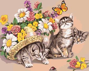 Malen nach Zahlen - KÄTZCHEN MIT HUT UND BLUMEN