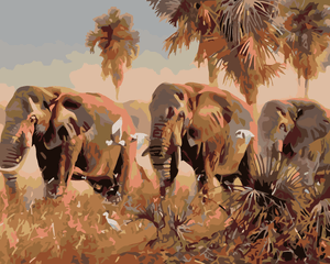 Malen nach Zahlen - ELEFANTEN IN DER SAVANNE