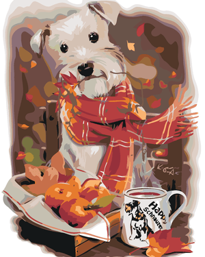 Malen nach Zahlen - WEIßER SCHNAUZER UND TASSE TEE