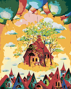 Malen nach Zahlen - FARBIGE HÄUSER MIT BALLONS