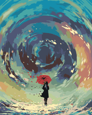 Malen nach Zahlen - FRAU MIT REGENSCHIRM UND WASSERWIRBEL