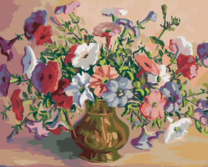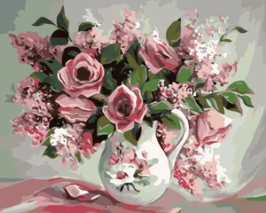 Malen nach Zahlen - ROSEN UND FLIEDER IN GEMALTER VASE