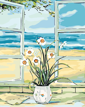 Malen nach Zahlen - NARCISSE IM FENSTER AM STRAND