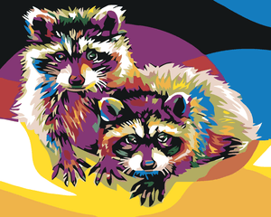 Malen nach Zahlen - FARBIGE WASCHBÄREN