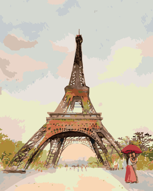 Malen nach Zahlen - EIFFELTURM UND FRAU MIT ROTEM REGE...