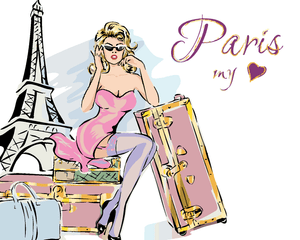 Malen nach Zahlen - FRAU MIT KOFFERN AM EIFFELTURM