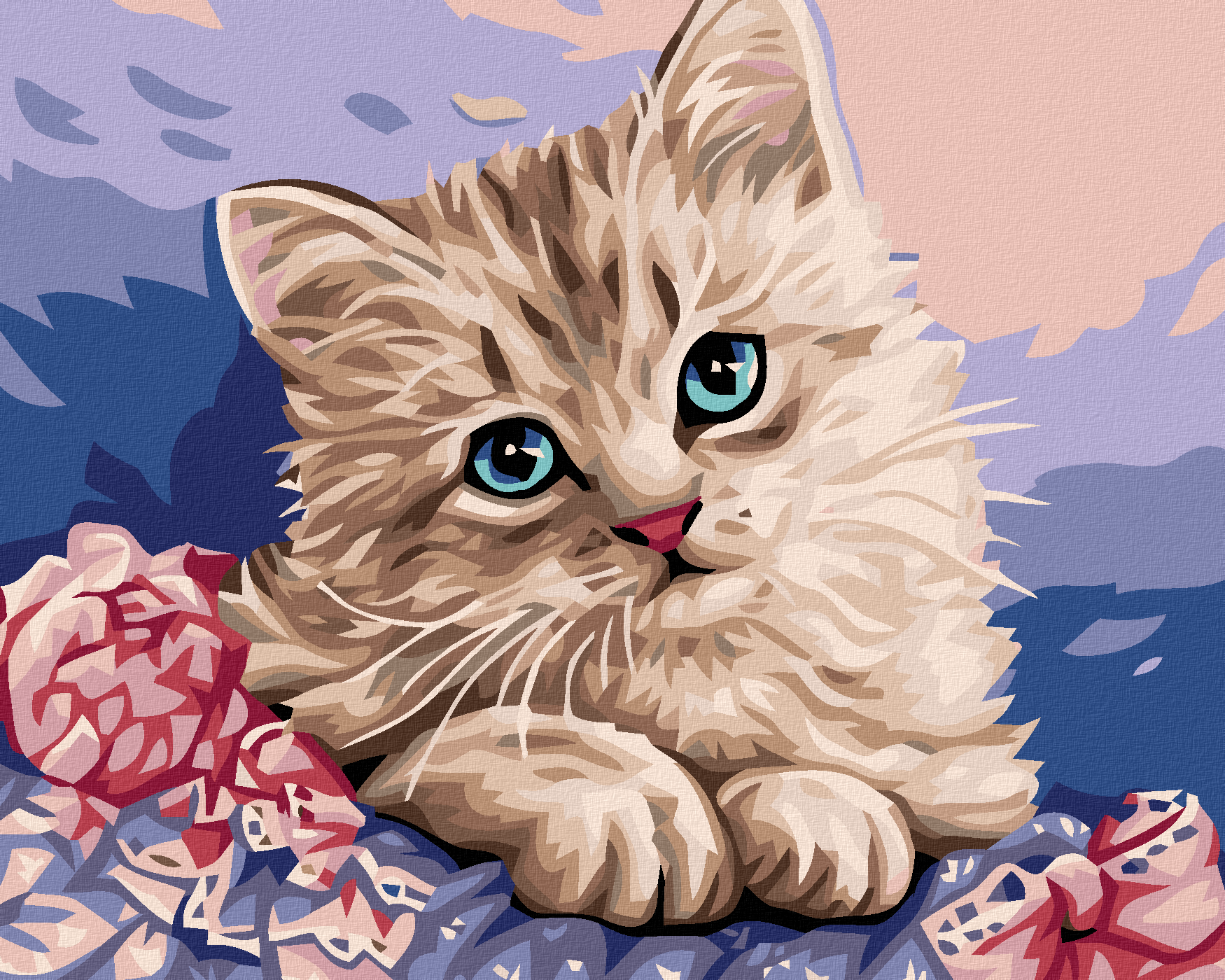 Malen nach Zahlen - KÄTZCHEN UND ROSA BLUMEN
